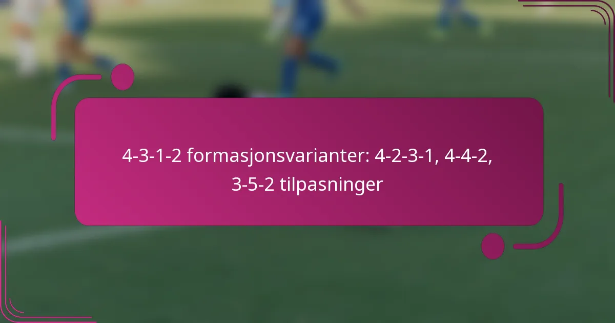 4-3-1-2-formasjonen fungerer som en allsidig taktisk oppsett i fotball, som balanserer defensiv styrke med angrepsmuligheter. Varianter som 4-2-3-1 og 4-4-2 tilpasser denne formasjonen for å forbedre midtbanekontroll og gi mer angrepsfleksibilitet, mens 3-5-2 tilbyr en annen tilnærming ved å bruke vingbacker for bredde. Hver tilpasning lar lag skreddersy strategiene sine basert på spillerstyrker og kampsituasjoner.